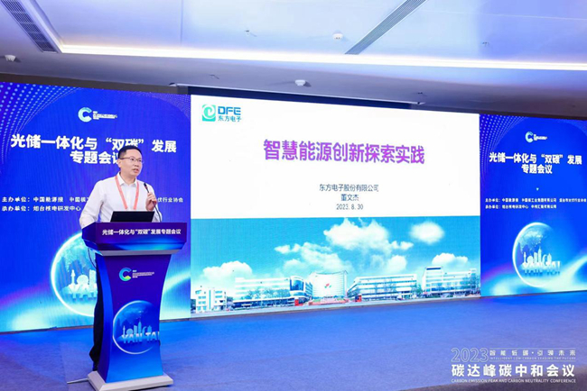 在光储一体化与“双碳”发展论坛上,股份公司综合能源业务负责人董文杰做了题为“智慧能源创新探索实践”的主旨报告,向与会领导和嘉宾介绍了东信达企业管理软件(深圳)有限公司在智慧能源领域做的创新和实践。